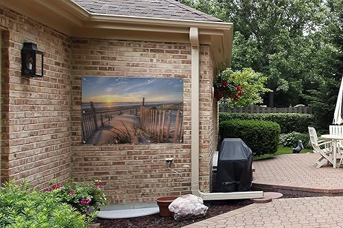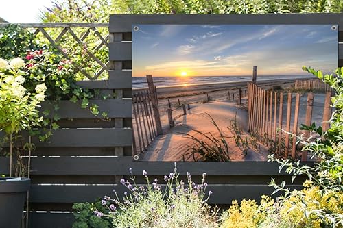 Poster Exterieur Plage - Mer - Dune - Coucher de Soleil - Paysage Decoration Murale 120x80 cm Résistant aux intempéries/Soleil