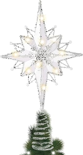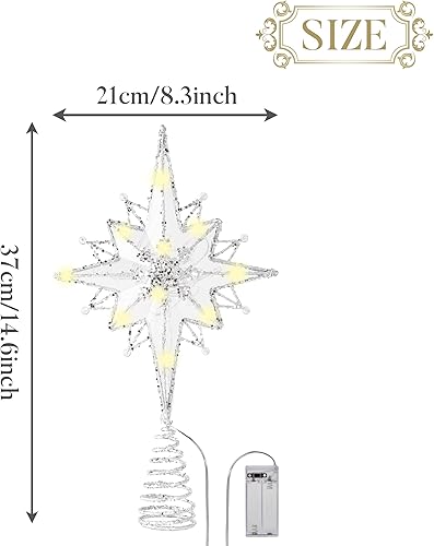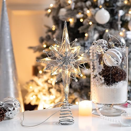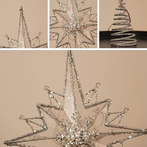 Valery Madelyn Étoile Sapin de Noël en Métal et Plastique, Topper Sapin de Noël Argent, Haut de Sapin de Noël Traditionnel, Pointe de Sapin à Piles(Non Inclus) 10 LED Jaunes Chaudes Illuminées 34cm