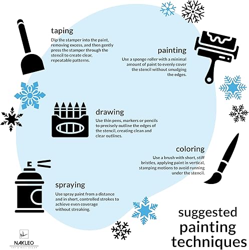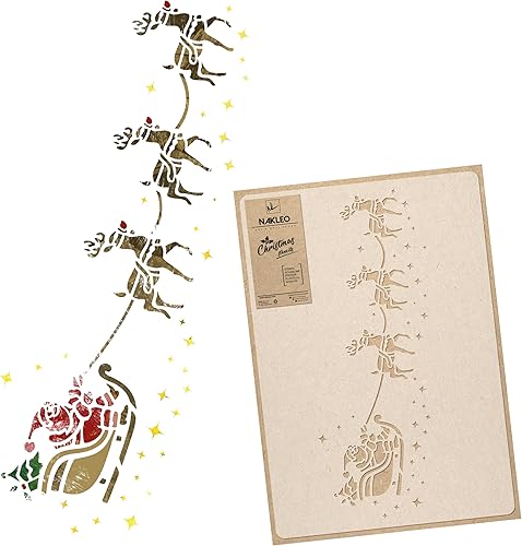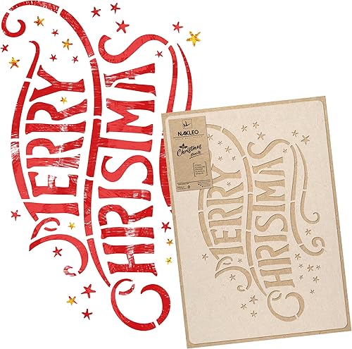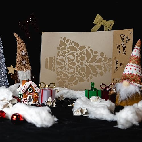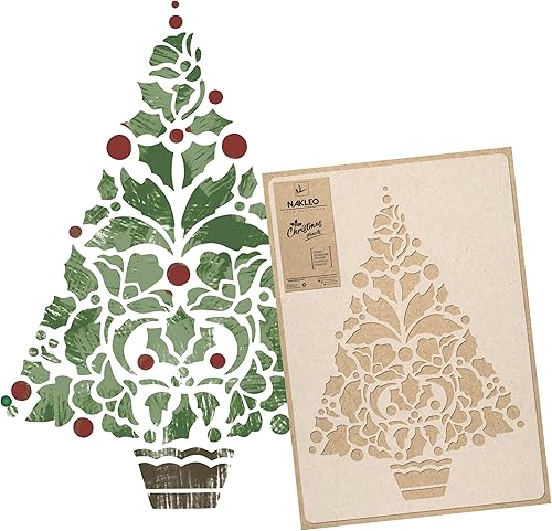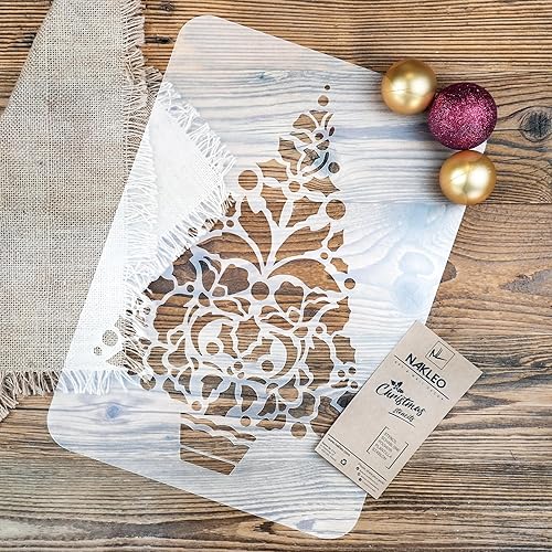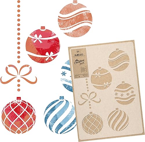 NAKLEO Noël Pochoir pour Peintue 21x30cm, Plastique et Réutilisable, Boule Noël Hiver Modèle de Neige Artificielle et Peindre, DIY Bricolage Artisanat Décoration, Fenêtre Mur Porte Bois
