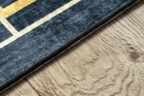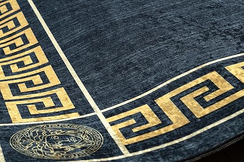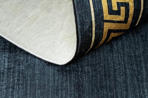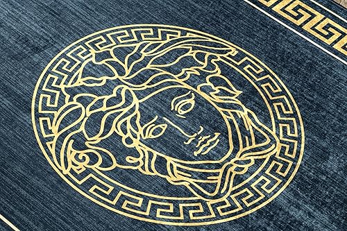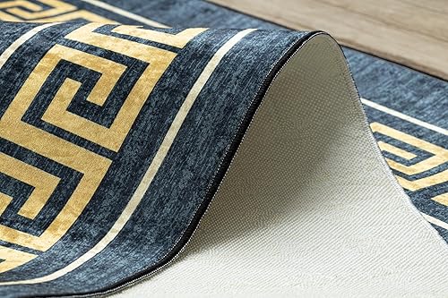 rugsx Tapis Moderne Lavable Andre pour la Chambre des Enfants, Le Salon, l'entrée, Moquette Lavable en Machine, Cadre, méduse Grecque, antidérapant - Bleu/Or 120x170 cm