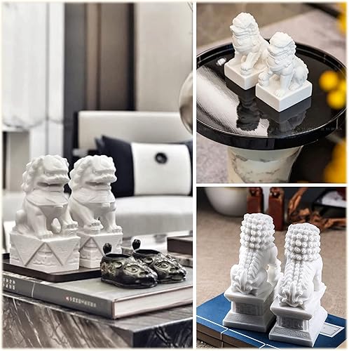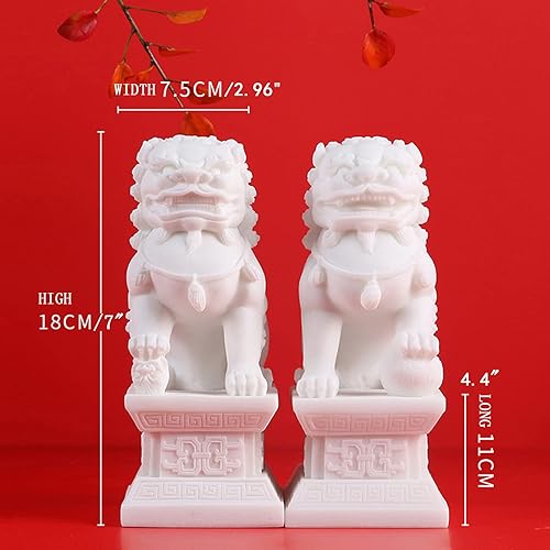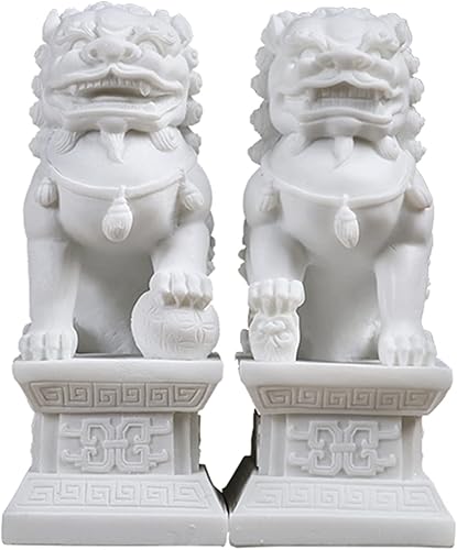Blanc Feng Shui Foo Dog Lion Statue, Paire De Beijing Fu Foo Chiens Statues De Tue-Tue De Tue-Tue du Guardian Feng Shui Décor, Figurine Wward Éteil Énergie,Blanc,Large