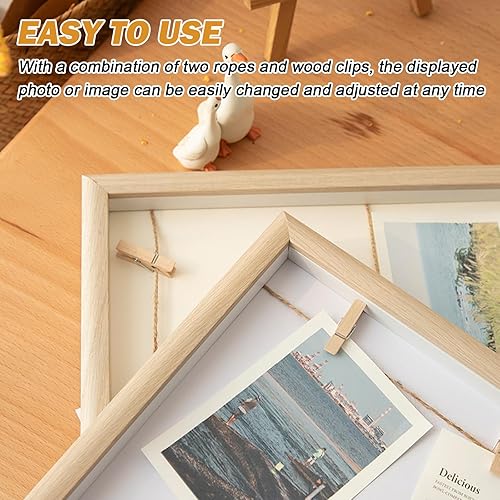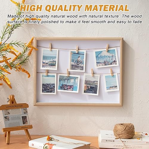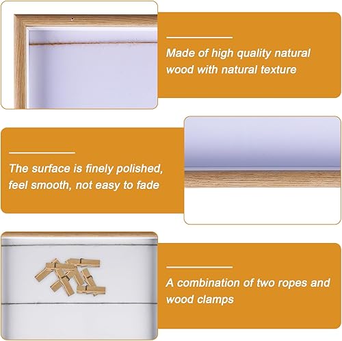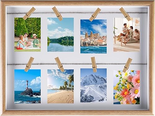 Sporgo Cadre photo avec pinces et laisse : 8 photos bricolage mur photo en bois, cadre photo plusieurs images, mur photo avec pinces, pour photos, cartes postales, notes, cartes de concert