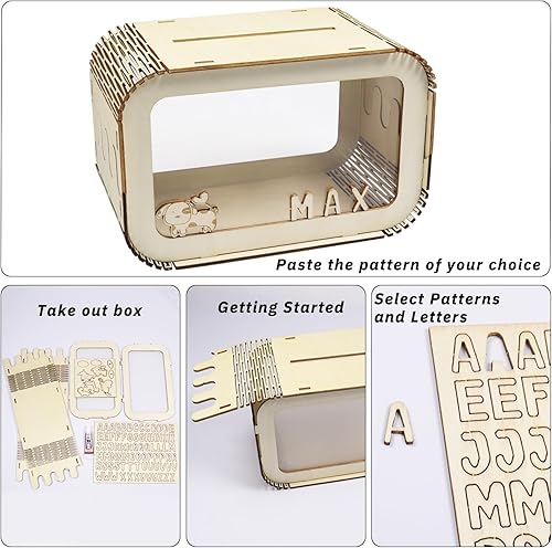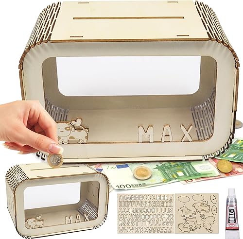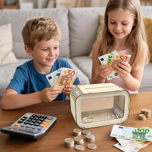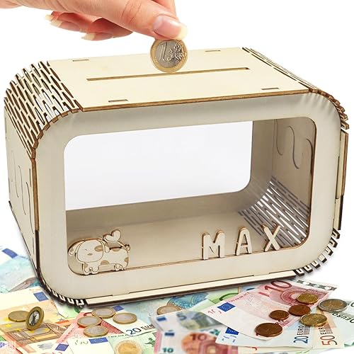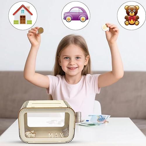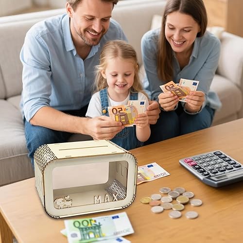 Tirelire pour enfants - Personnalisée - En bois - Pour garçons et filles - Avec nom - En acrylique - Avec lettres personnalisées de A à Z - Alphabet - Cadeau - Décoration