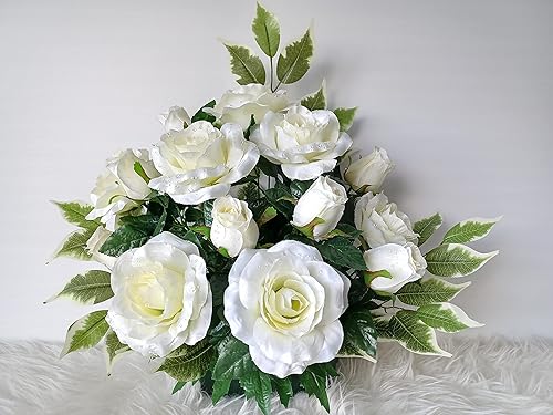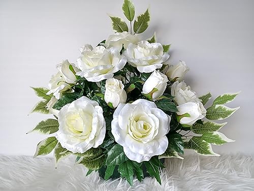 Roselynexpress Composition De Fleurs Artificielles Lesté Totalement Ciment, Réalisé par nos Soins, Produit Fleurs de très Bonne qualité, Bonne Tenue au Vent.