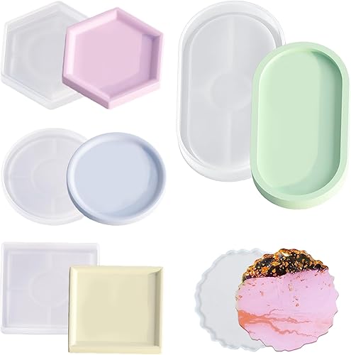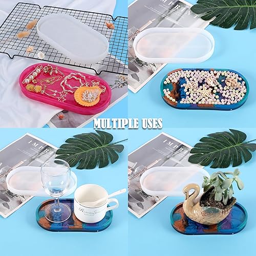 DKDDSSS 5 Pièces Moule Resine Epoxy Kit, Moules en RéSine, Moule Plateau en RéSine Silicone Moule Plat Ovale en Silicone pour La DéCoration DIY Table à Manger Dessous-De-Verre
