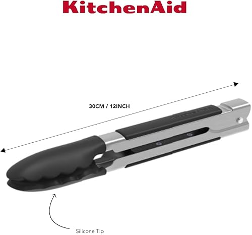 KitchenAid Pinces à verrouillage latéral avec bouts en silicone, noir onyx, 32 cm