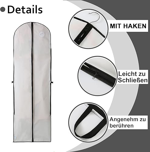 Housse de Robe de Mariée, 60 x 180 cm Housse Vetements à Suspendre,Robe Protection Rangement pour Robes de Soirée, Robes de Mariée, Manteaux