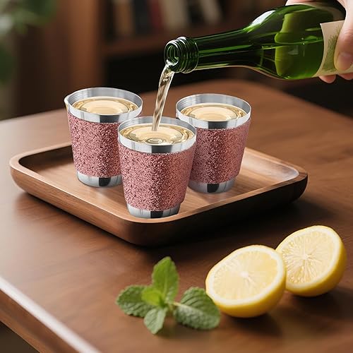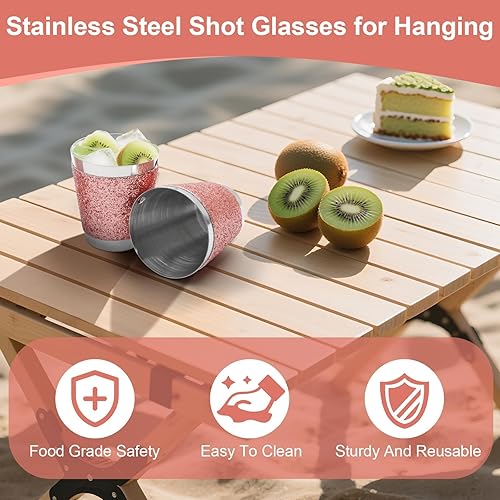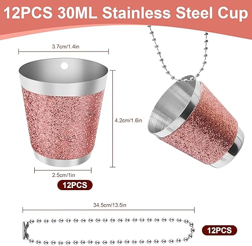 CoKeeSun 12 Pièces Verre à Shot avec Chaîne, 30ml Verres à Liqueur en Métal avec Chaînes Réutilisables Rose Convient pour Carnaval Mariage Dégustation de Vin Enterrement de Vie de Jeune Fille
