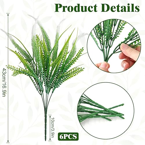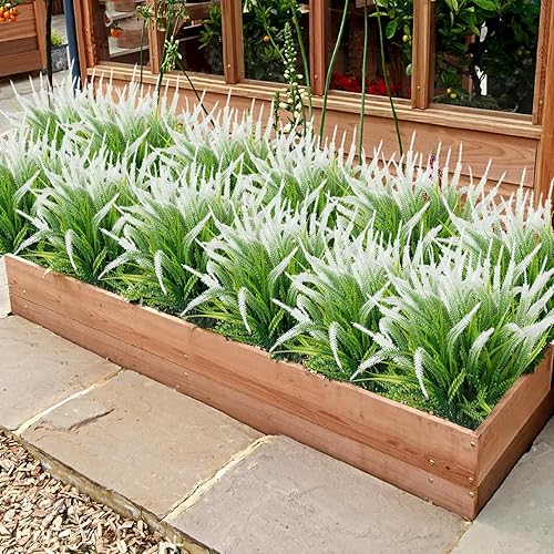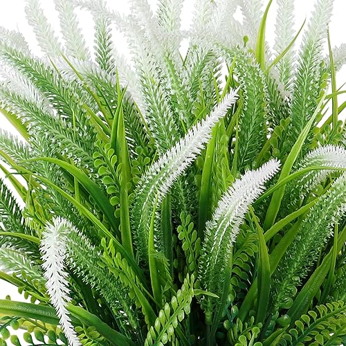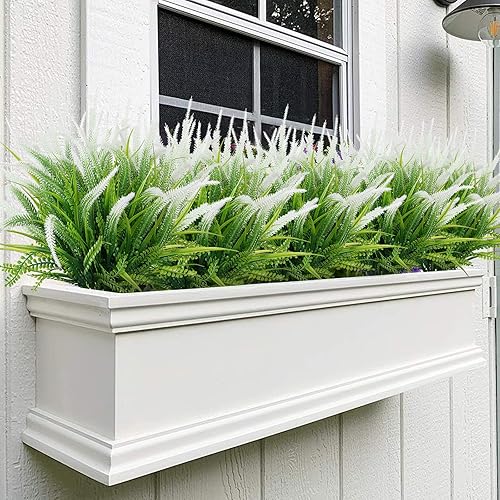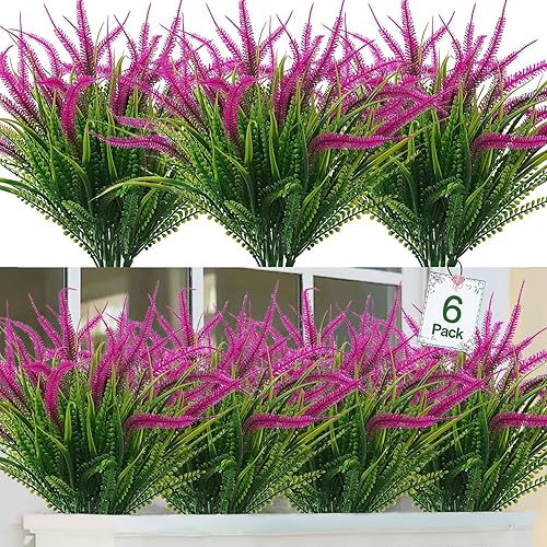 ASTNIC Lot de 6 Fleurs Artificielles Interieur et Exterieur résistants aux UV Fleurs Lavande Bouquet en Plastique pour Jardin, terrasse, Mariage, Allée, Porche décoration (Blanc)