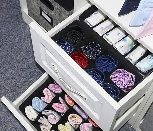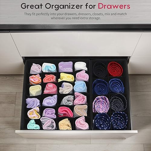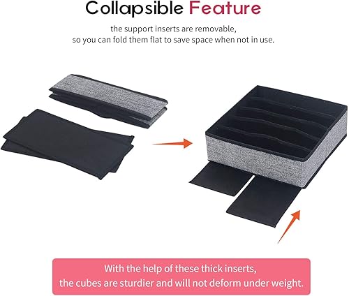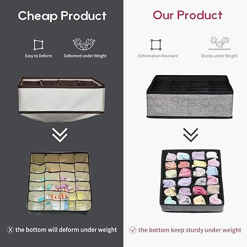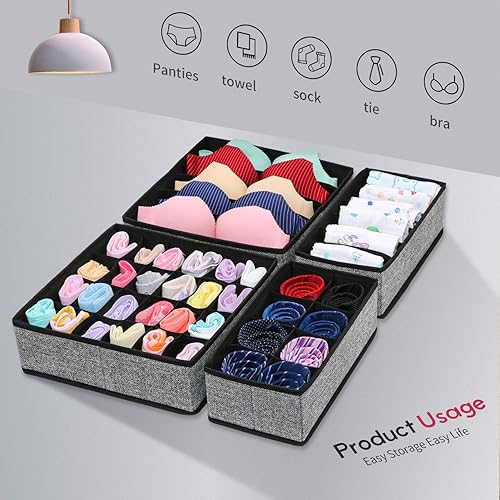 homyfort Organisateur de Tiroir Pliable, Non-tissé, pour sous-vètements, Soutien Gorges, Chaussettes, Boîte de Rangement à Compartiment, Pack de 4, Noir Lin, XASS4P