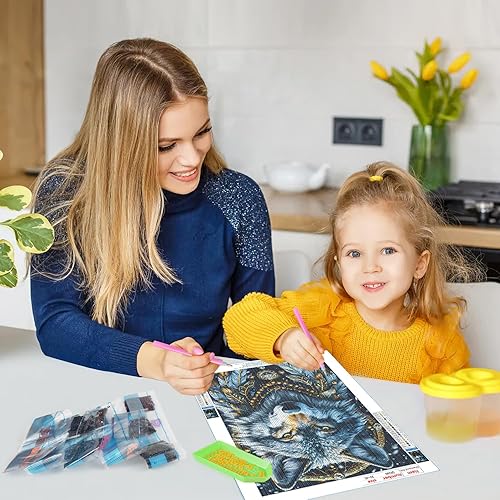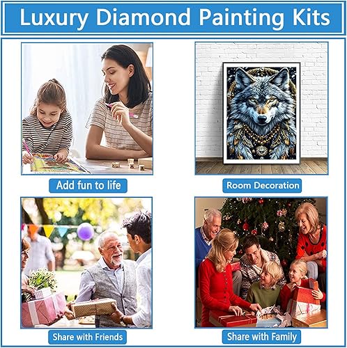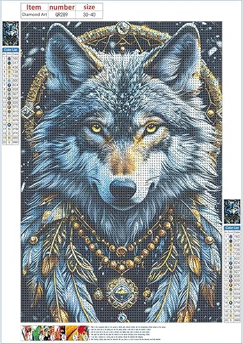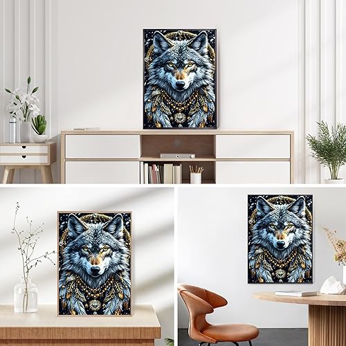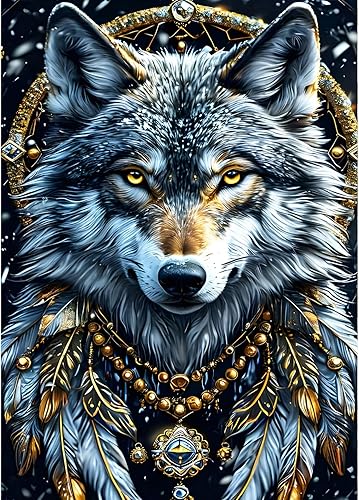 QINRUBB DIY 5D Fantaisie Loup Peinture Diamant Painting Kit, 5D Attrape-rêves Art du Diamant Complet Kits, Plume Diamond Art Kits Point de Croix Painting pour Adultes Débutants Maison Décor 30x40 cm