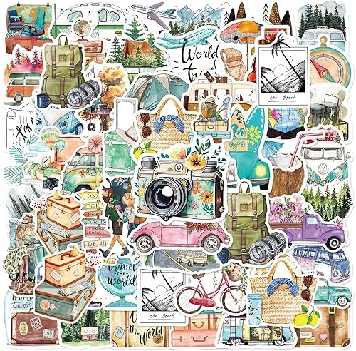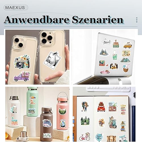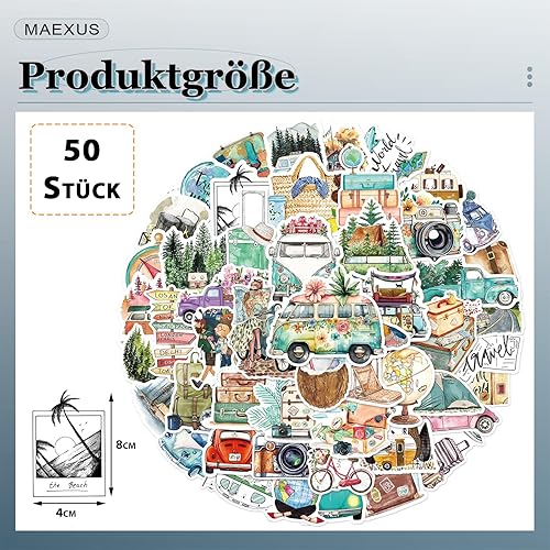 MAEXUS Lot de 50 autocollants de voyage - En PVC imperméable - Pour scrapbooking, album photo, accessoires de voyage - Autocollants décoratifs pour journal, carnet de notes