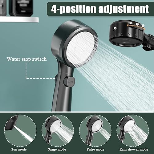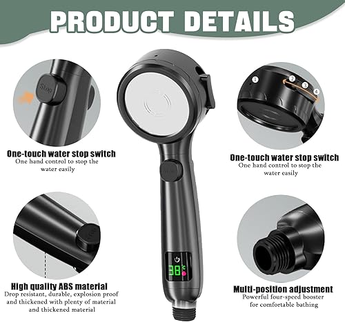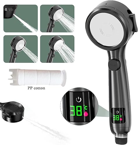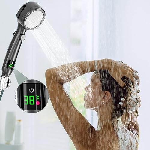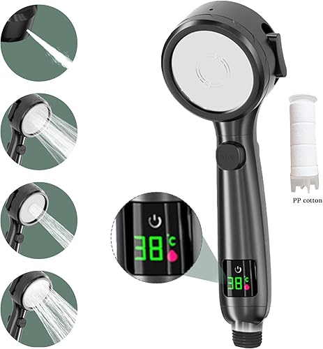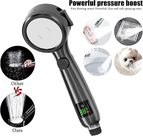 Pommeau de douche économe en eau avec affichage de la température, augmentation de la pression Douchette de douche avec 3 + 1 types de jet Pommeau de douche Avec interrupteur de pause à une