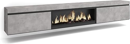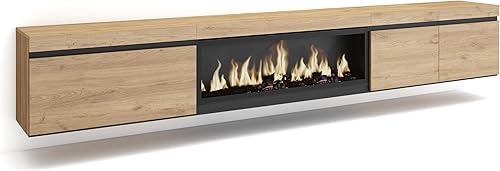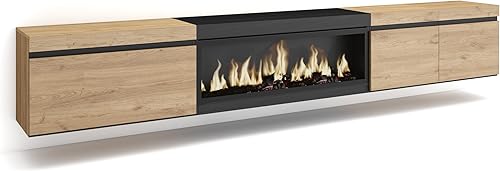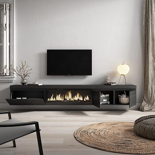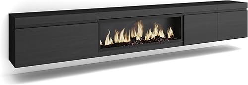 Skraut Home | Meuble TV | Banc Télé | Grand Espace de Rangement | 288x45x35 cm | TV Grand Format | Cheminée électrique XXL | Suspendu, Mural | Style Moderne | Noir