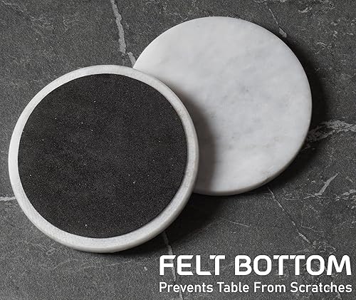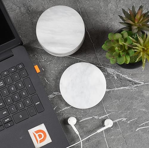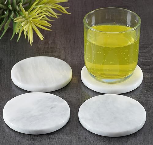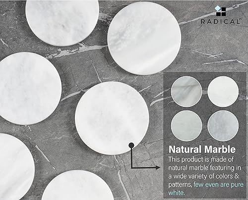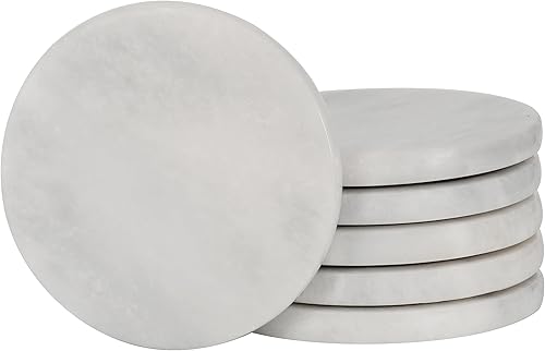 Ensemble de 6 sous-Verres Ronds en marbre Blanc Faits Main de 9 cm pour Tasse à café, Verre et Boissons
