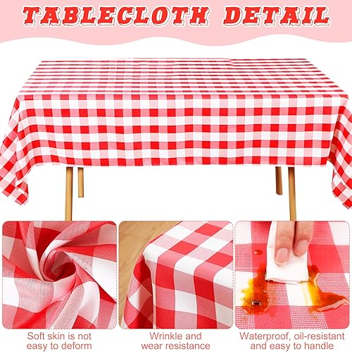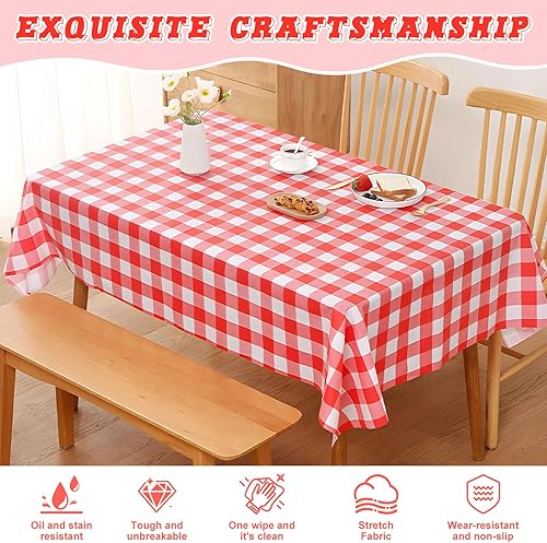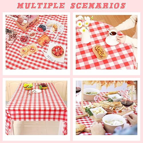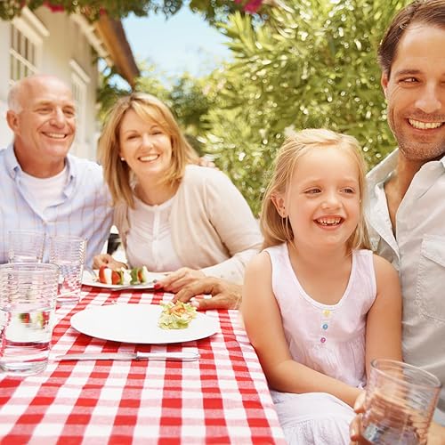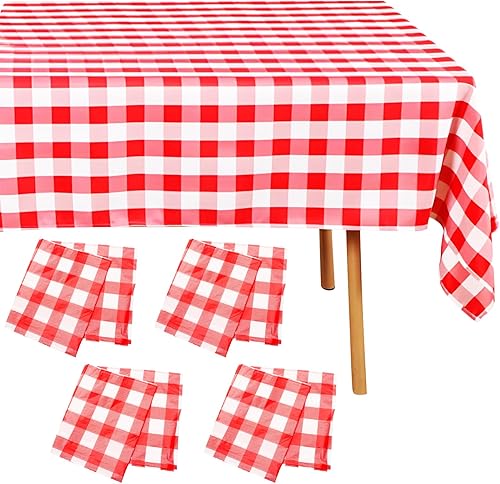Saier tbo Lot de 8 nappes vichy rouges - 137 x 274 cm - Résistantes à l'huile - Faciles à nettoyer - Rectangulaires - En plastique - Pour fêtes, barbecue, pique-nique, anniversaire, mariage, vacances