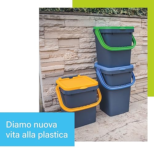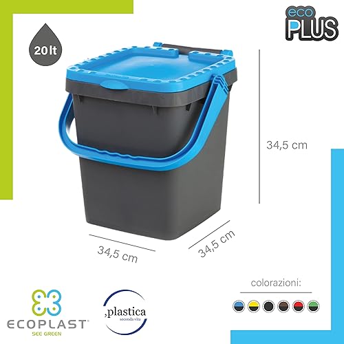 Ecoplast | Poubelle pour collecte différenciée 20 l, poubelle en plastique recyclée, vert, 34,5 x 34,5 x 34,5 x 34,5 cm, fabriquée en Italie