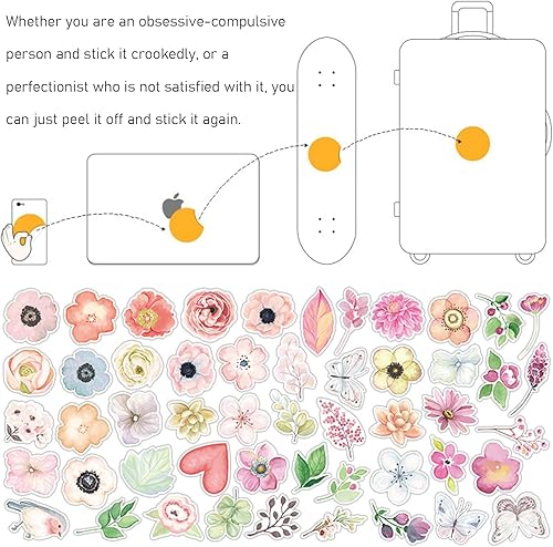 Lot de 50 autocollants floraux colorés avec motif floral, imperméables, beaux autocollants pour ordinateurs, bouteilles d'eau, scooters, bagages, etc.