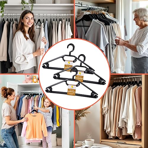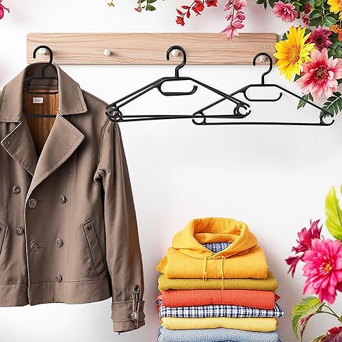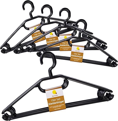 Spetebo Lot de 50 cintres en Plastique 100% recyclé Noir - Qualité Extra Lourde (45 g par Cintre) - Fabriqué en UE - avec rainures antidérapantes et Cravates - Porte-Ceinture