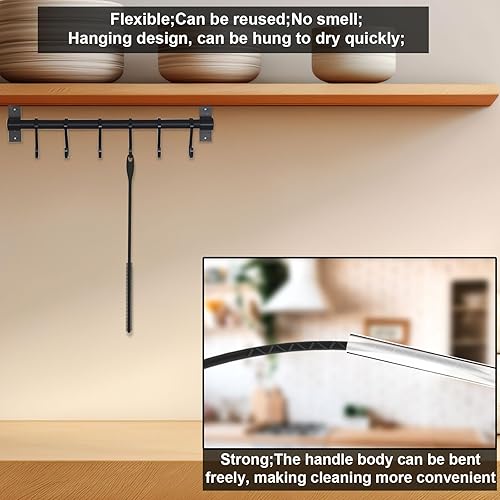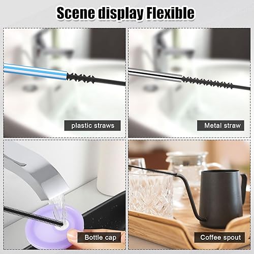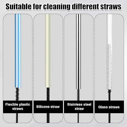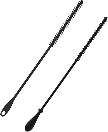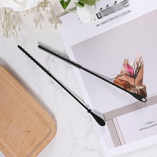 2pcs Brosses à Paille en Silicone, 24 cm Brosse de Nettoyage Extra Longue de 2 Styles de Brosses à Paille Réutilisables pour Bouteille d'eau Brosses de Nettoyage pour Crevasses (Noir)