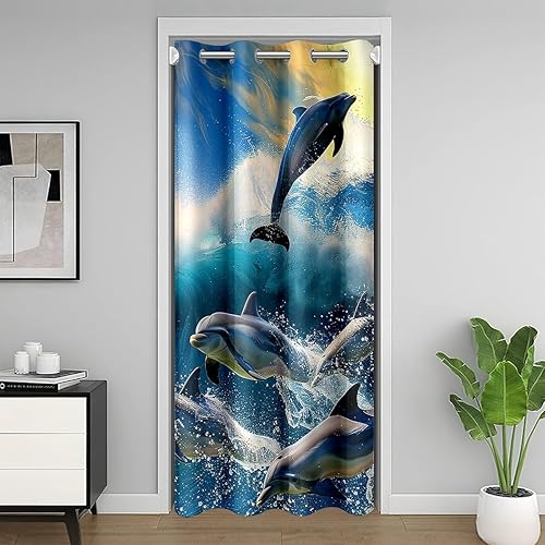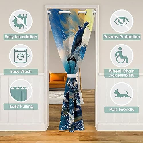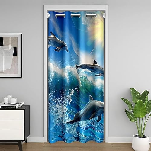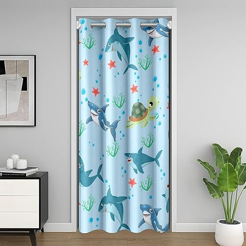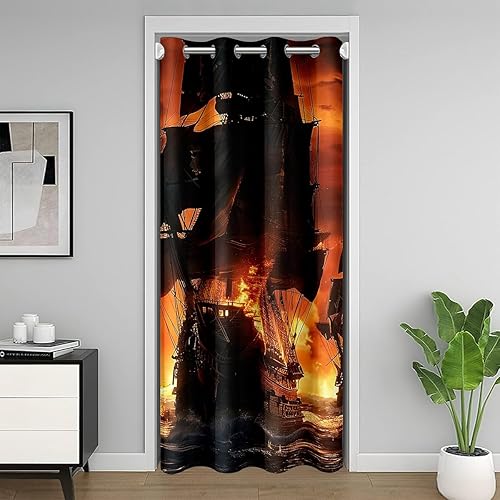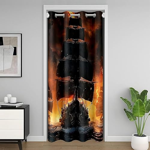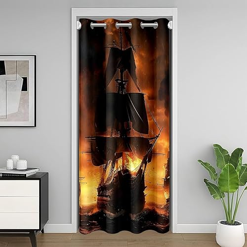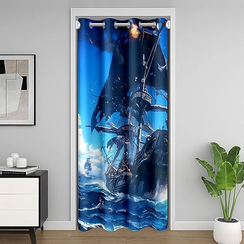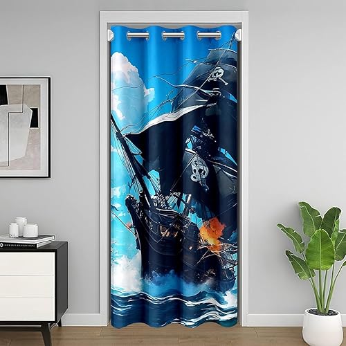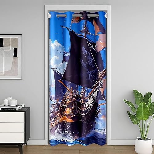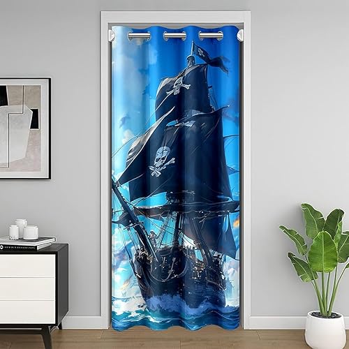 richhome Rideau de porte de bateau pirate 106,7 x 203,2 cm (l x L) - Bleu ciel et nuages blancs - Décoration de porte pour enfants, adolescents et adultes - Style occidental - Thème océan - Pour