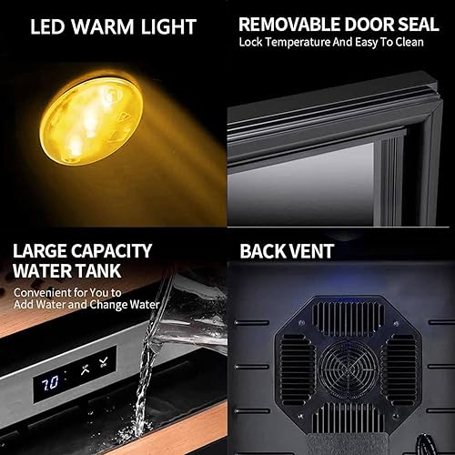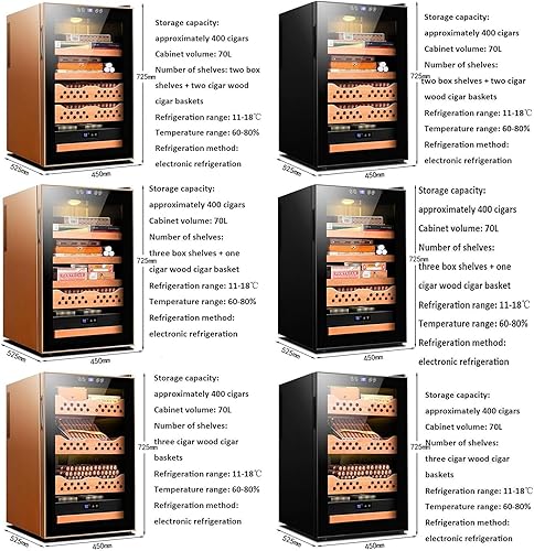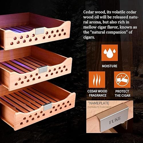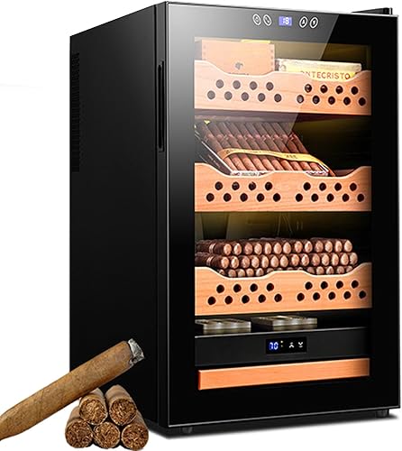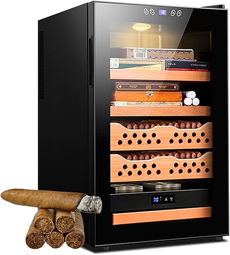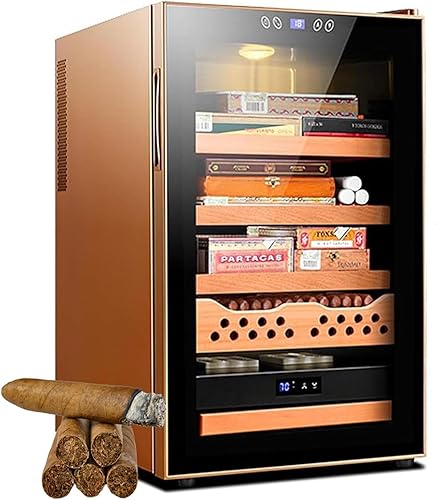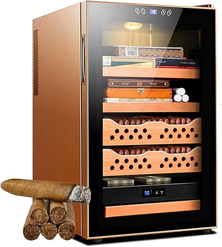 hKjPlvf Cave à Cigares éLectrique 70L pour 400 Cigares, Cave à Cigares, Cave à Cigares éLectronique avec RéGlage De L'Humidité, Caves à Cigares avec éTagèRes en Bois De Cèdre,Gold2