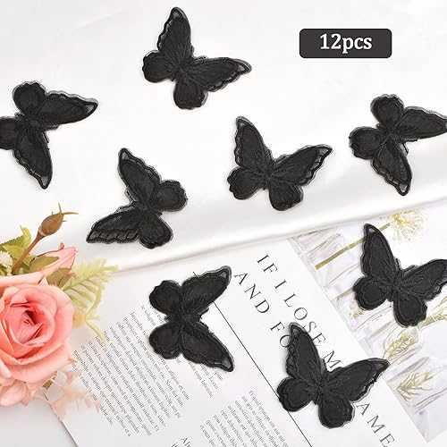 URROMA Lot de 12 appliques en dentelle noire pour couture, loisirs créatifs