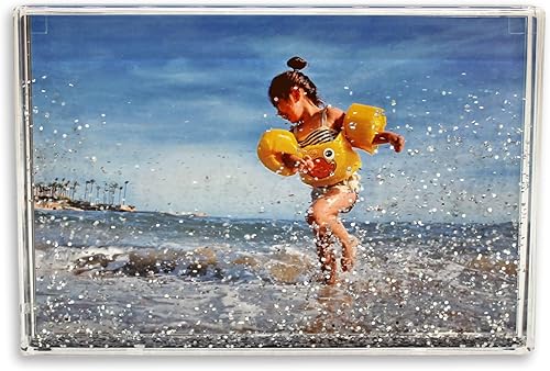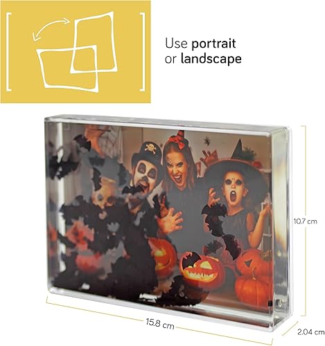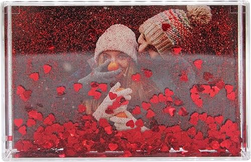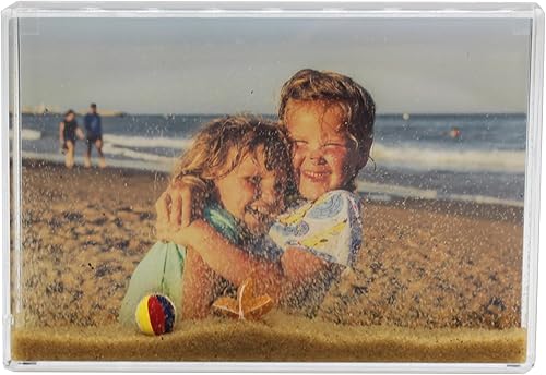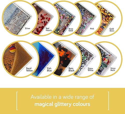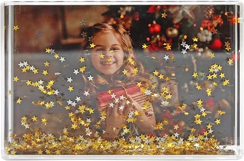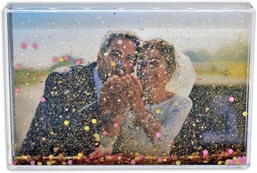Adventa Cadre photo pailleté en acrylique - Peut contenir 10 x 15 cm - Bloc photo de bureau transparent sans cadre avec confettis (or rose) - Cadeau personnalisé idéal pour un mariage