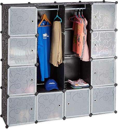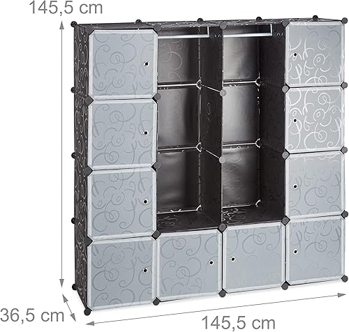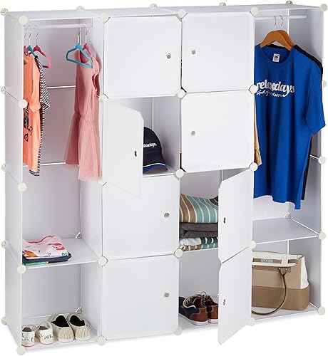 Relaxdays Étagère cubes rangement penderie armoire 12 compartiments plastique modulable HxlxP: 145,5 x 145,5 cm, blanc