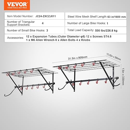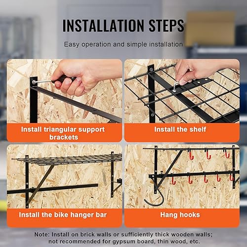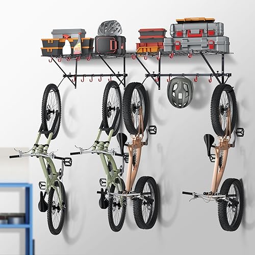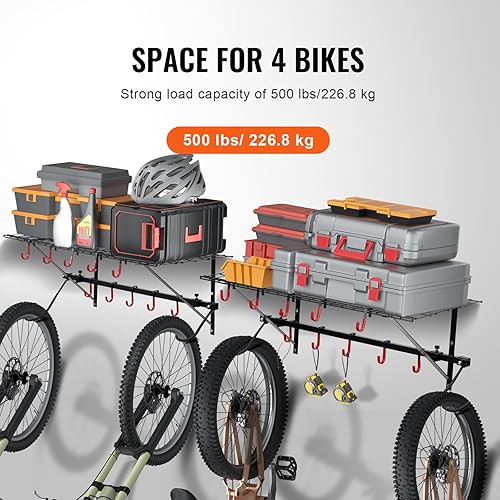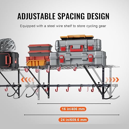VEVOR Support de rangement pour vélo, 1600 mm, 4 porte-vélos avec 2 étagères, organisateur maison et de garage, charge 226,8 kg, support mural réglable personnalisable pour différentes tailles de vélo