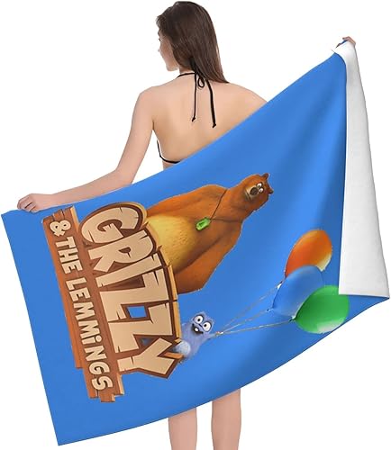 Serviette de Bain pour Grizzy et Les Lemmings Cartoon Fashion Serviettes de Camping, Serviette en Microfibre Super absorbante à séchage Rapide Serviette en Microfibre 32 x 52 Pouces