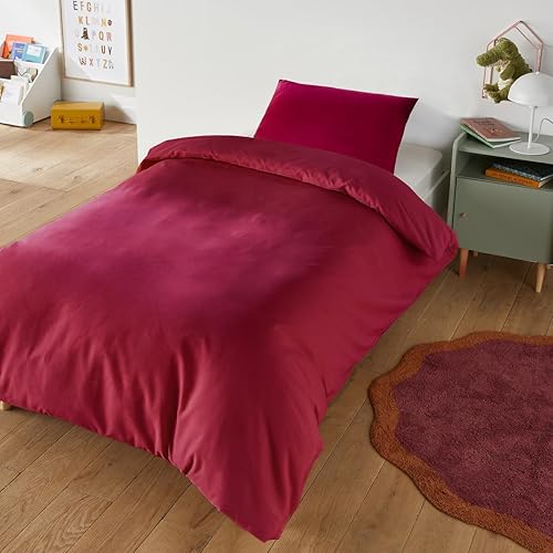 Générique Parure de Draps 1 Place Unie - 3 Pièces (Drap Plat + Drap Housse + Taie d'oreiller) - 100% Coton - Tissage 57 Fils Très Serré - Plusieurs Couleurs Disponibles (Bordeau)