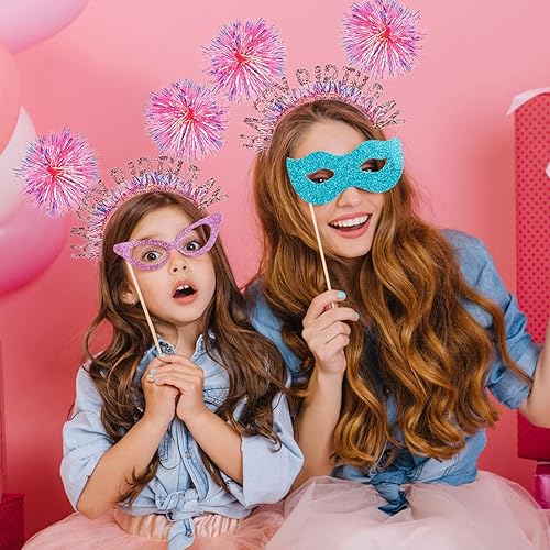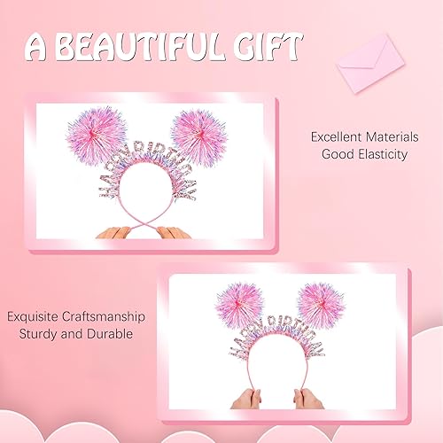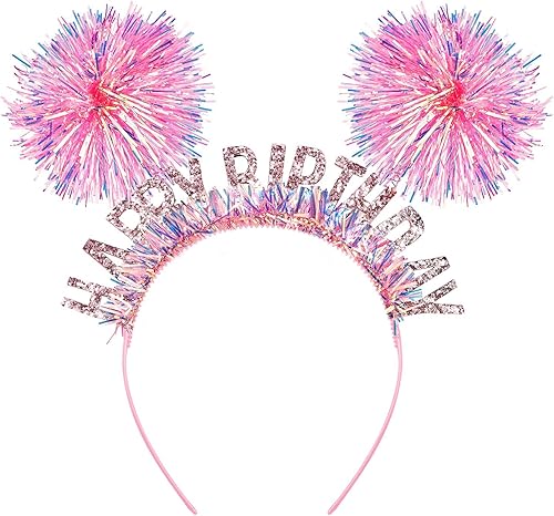 FloralGrace Lot de 2 bandeaux d'anniversaire avec couronne à paillettes pour filles, décoration de fêtes et cadeaux sucrés (rose)