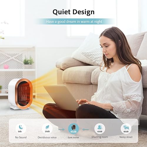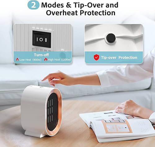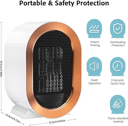 Tiptop Home Radiateur Électrique Soufflant 1200W Mini Chauffage d'Appoint Soufflant pour Salle de Bain, Radiateur en Céramique à Chauffage Rapide à Économie d'Énergie pour Chambre, Bureau