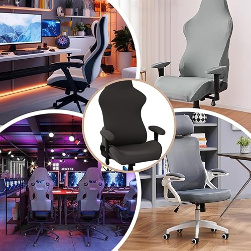 KAIYAYA Housse Chaise Gaming avec Housses de Coussin et d'Accoudoir, Housses de Chaise de Jeu Extensibles, Noir Housses de Chaise de Gaming Amovible, Lavable et Antidérapante pour Chaise De Gaming