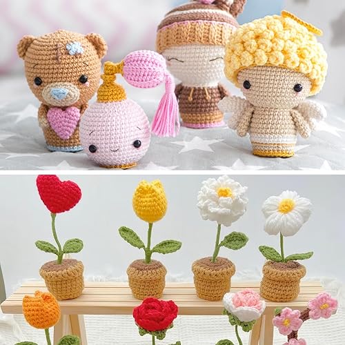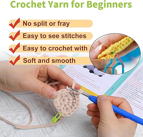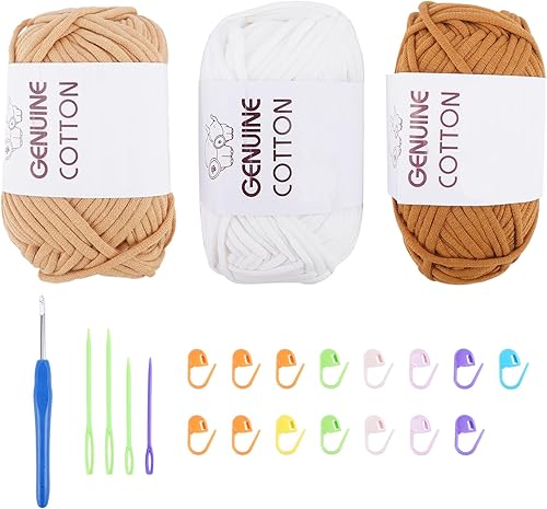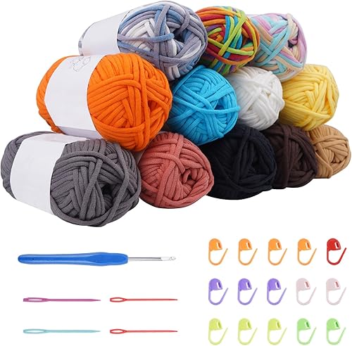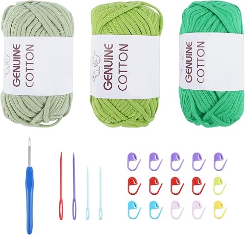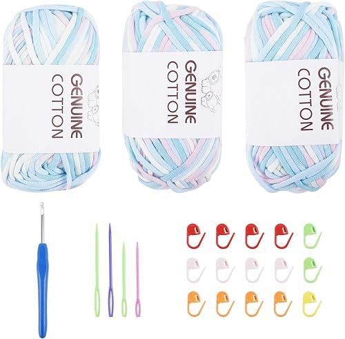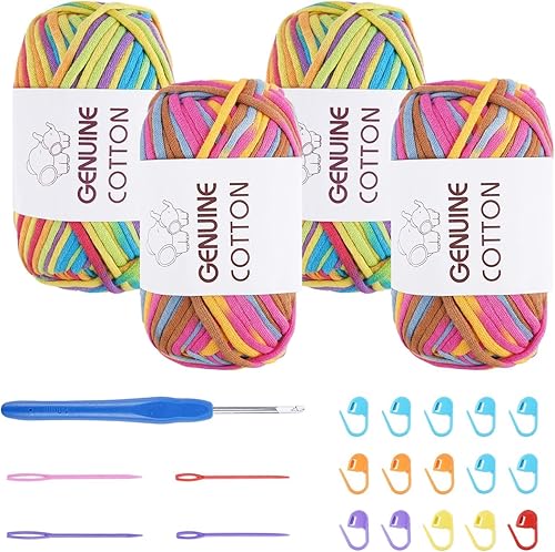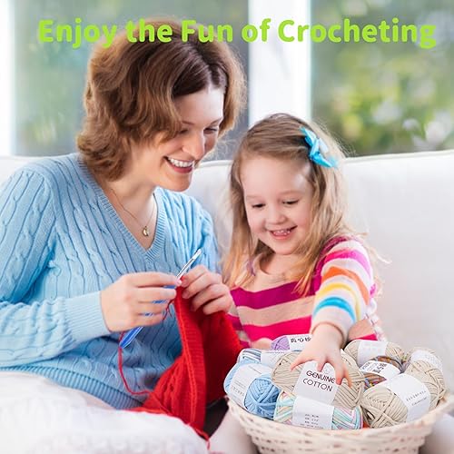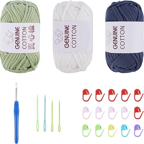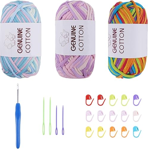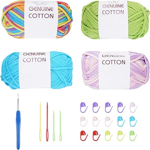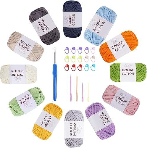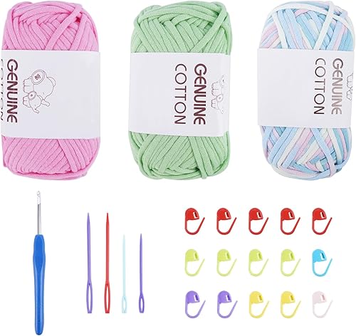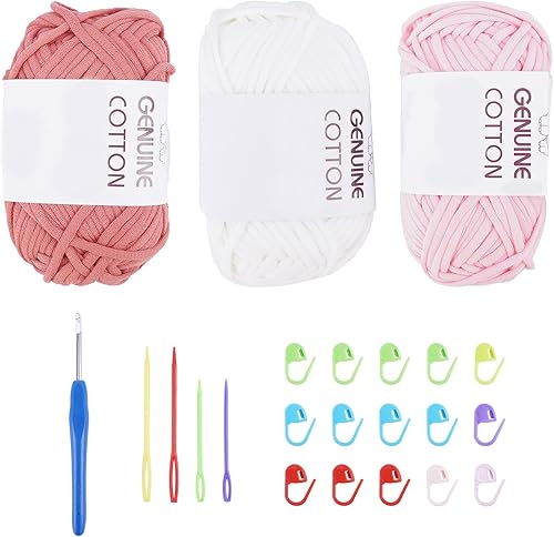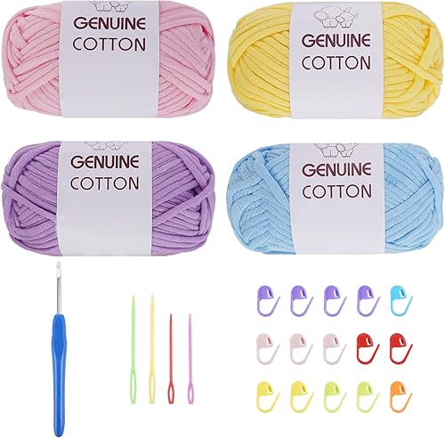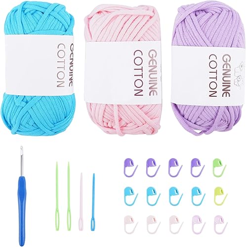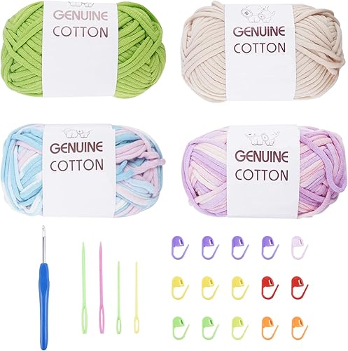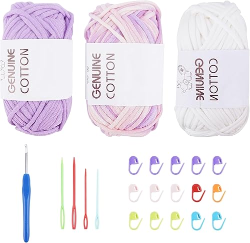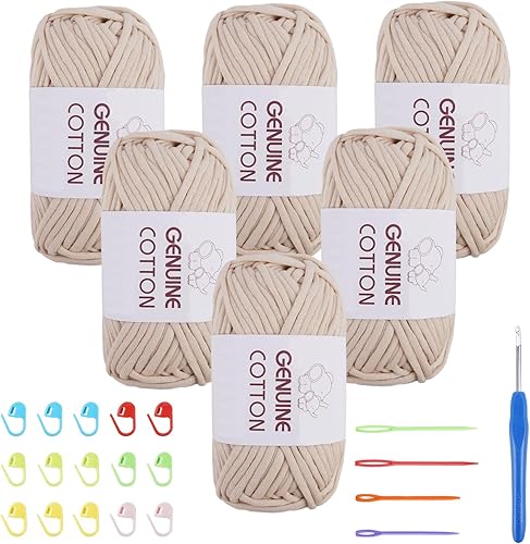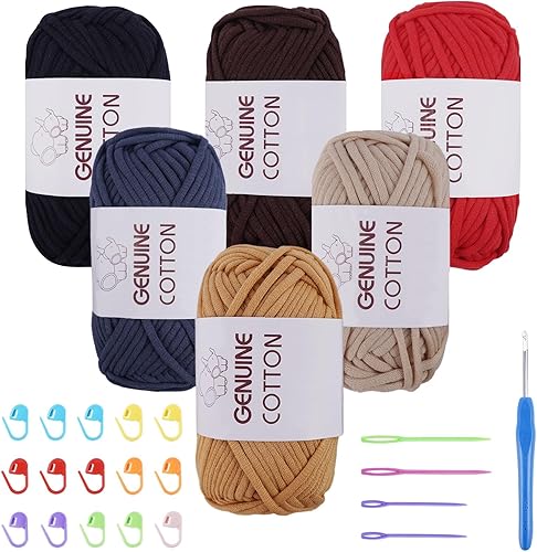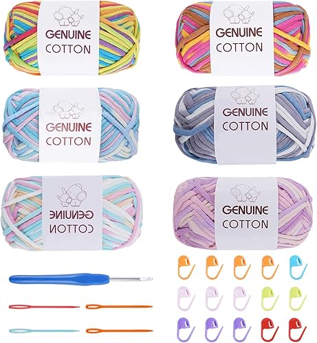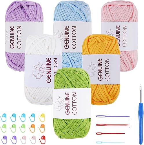 FOGAWA Lot de 6 Pelote Coton pour Crochet Fil Coton pour Débutants, Pelotes de Fil à Tricoter et à Crochet pour paniers, tapis (Rose, bleu clair, blanc, violet clair, jaune doré, vert d'automne)