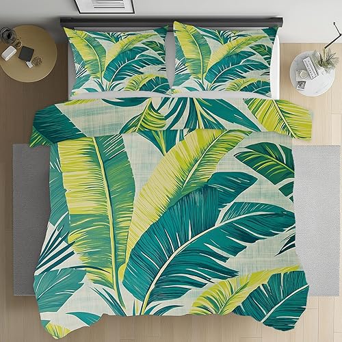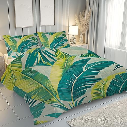 Yidbhsse Feuilles De Palmier Housse De Couette 90x190, Tropical Botanique Parure De Lit,Housse Couette Fermeture Éclair Plante Vert Linge De Lit Soft, Draps Et Taies D'oreillers