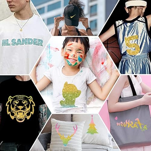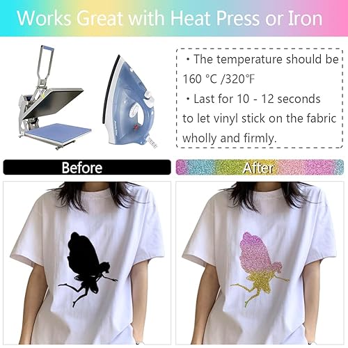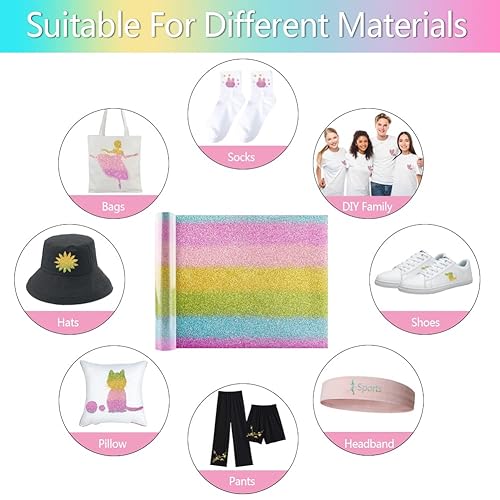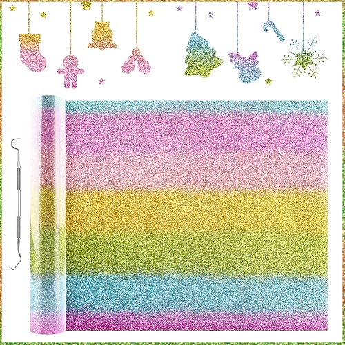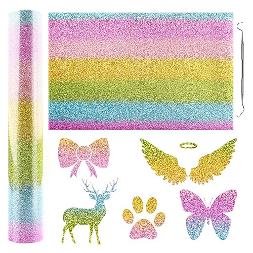 Geila Rouleau de vinyle de transfert thermique HTV thermocollant à paillettes Couleur arc-en-ciel 30 cm x 150 cm
