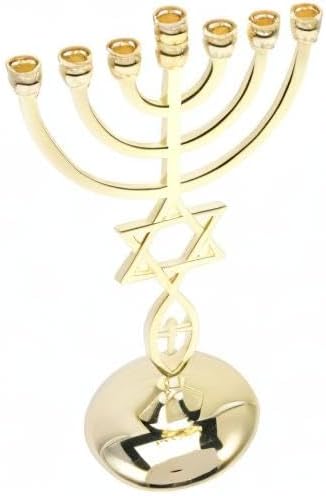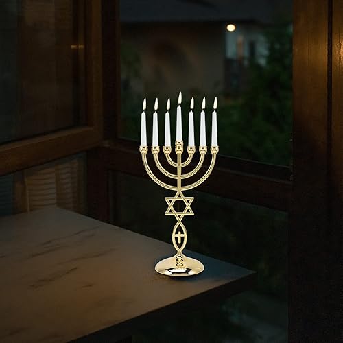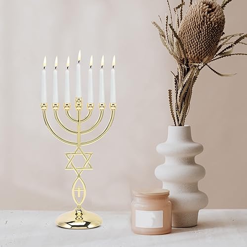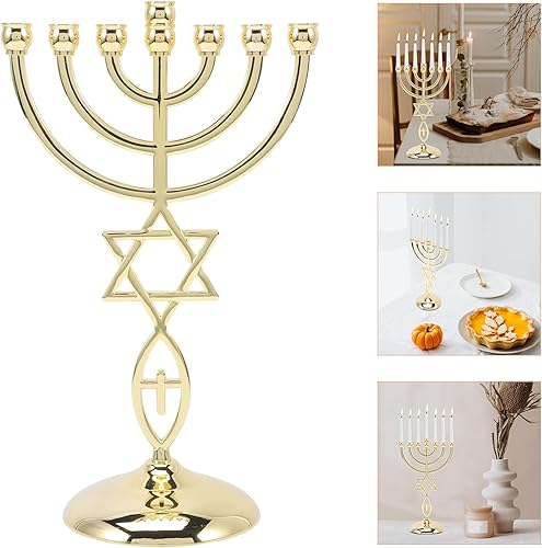 Appliques Hanukkah Menorah Bougeoir Chandeliers 7 Branche Hanukkah Menorah Pièce Maîtresse Cône Doré Bougeoir Décorations pour Hanukkah Fête De Vacances Décorations De Noël