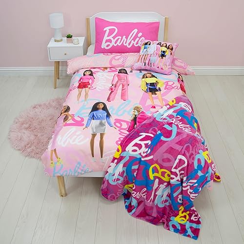 Barbie Couverture Polaire sous Licence Officielle | Logo Rose | Design Chambre à Coucher sans boîte | Chaude et Super Douce au Toucher | Parfaite pour la Maison, la Chambre, Les Voyages, Les soirées