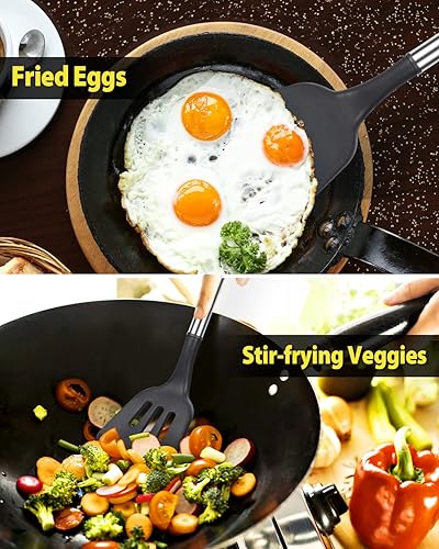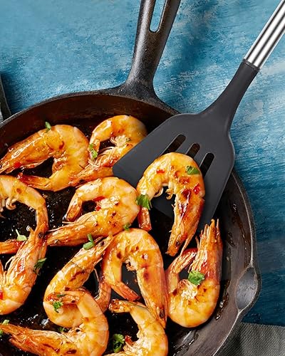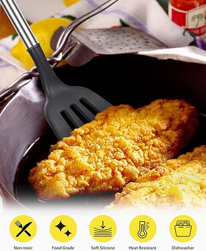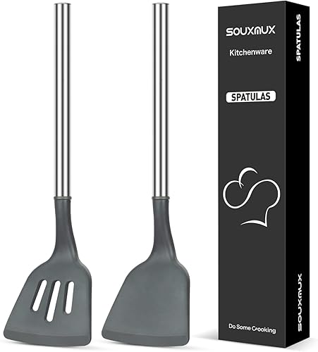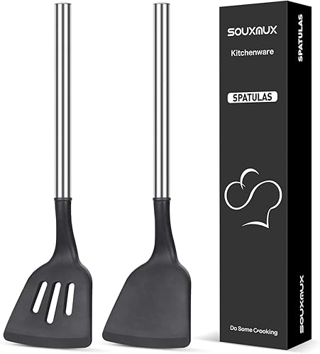 2 Spatules en Silicone Pour Wok, jeu de Spatules Solides et à Fentes, Manche en Acier Inoxydable Antiadhésif Sans BPA Résistant à la Chaleur Pour Cuisiner, Retourner les œufs, les Crêpes, le Poisson