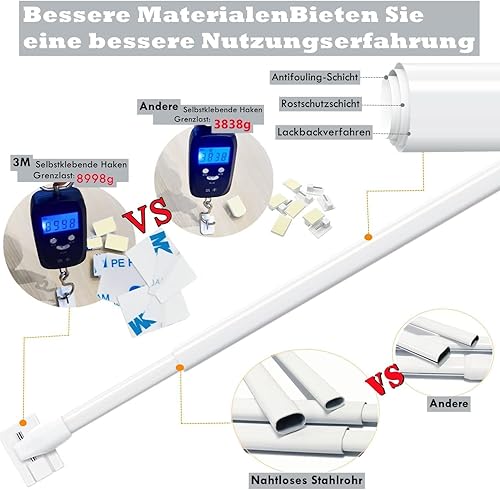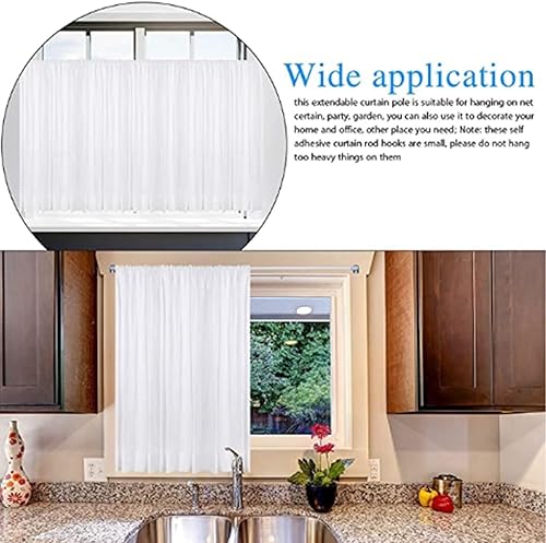 6 Tringles à Rideau Extensibles 30-50cm avec Crochets - Barres de Tension sans Perçage pour Fenêtres Cuisine Salon Douche - Support Adhésif Puissant - Blanc (6 Pièces)