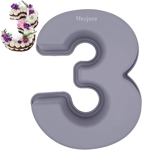 Moules à Gâteau Numérique en Silicone,Numéros 3 de Chiffre Nombre à Forme Moule à Gâteau Silicone pour Fête D'anniversaire, Anniversaire de Mariage (10 pouces 25 cm)
