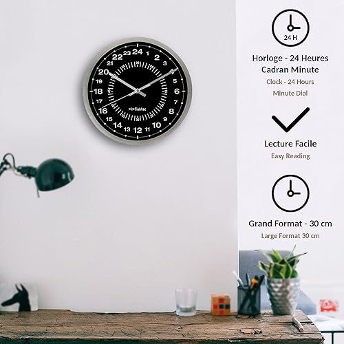 Fishtec - Horloge Murale Design Moderne 24 Heures - Ultra Précise Lecture Facile : Cadran des Minutes - Convient pour la Cuisine, Bureau, Salon, Chambre (Multicolor)