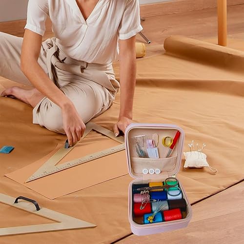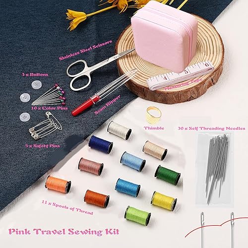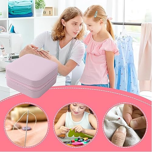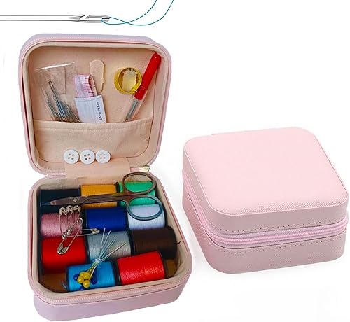 YiYFiT Kit de couture de voyage en cuir synthétique rose - Mini aiguilles à coudre - 65 pièces - Fil simple - Kit d'aiguilles à broder - Accessoires de couture de qualité supérieure pour adultes,