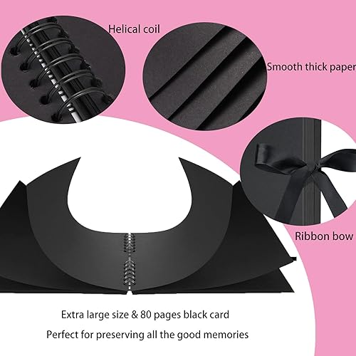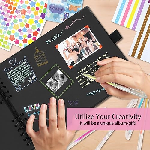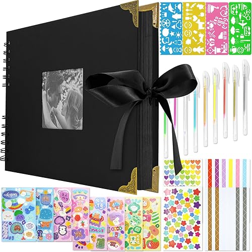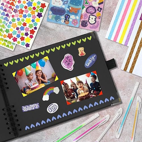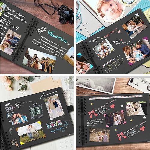 Album Photo Scrapbooking, 80 Pages Noir Livre Photo 31 * 21 cm Scrapbooking avec 6 Marqueurs Stylos 4pcs Pochoirs 8pcs Autocollants et 4pcs Scrapbooking Kit pour Famille Festival