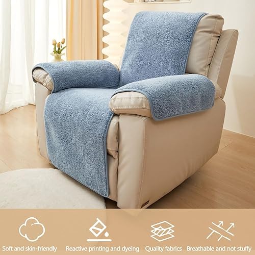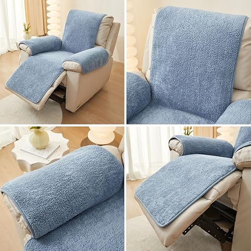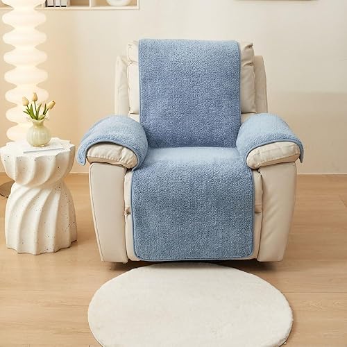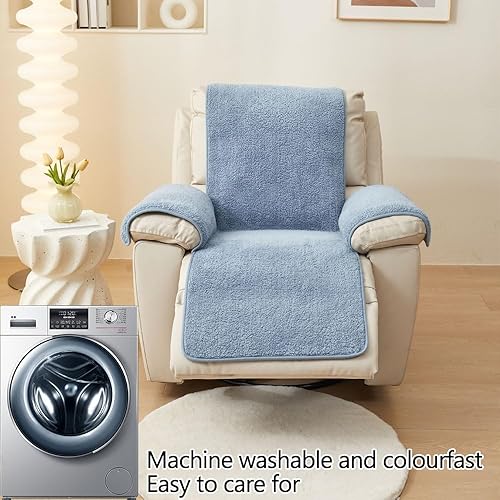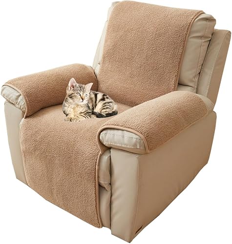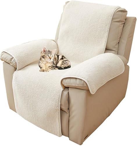 NUODWELL Housse de fauteuil inclinable en agneau épaisse - Antidérapante et lavable - 1 place - Super douce - Pour enfants et animaux domestiques (beige, 56 x 207 cm)