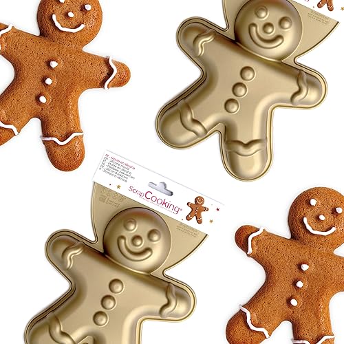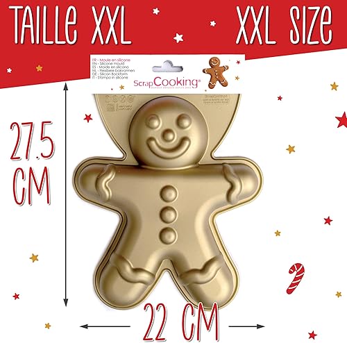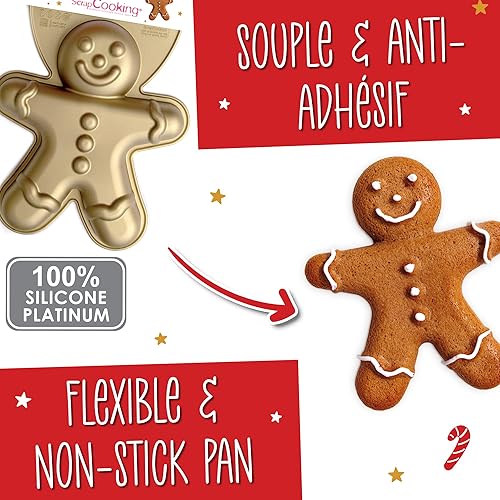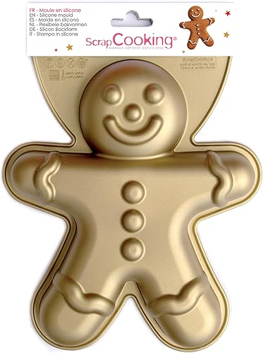 SCRAP COOKING - Moule en Silicone Bonhomme Pain d'Épices - Grand Moule à Gâteau XXL en Forme de Mannala, Mannele, Gingerbread Noël - Pâtisserie Biscuit Décoration - 3152, Or