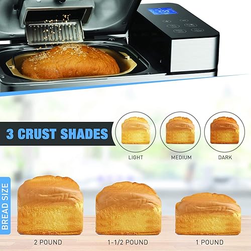 Machine à pain avec 19 programmes prédéfinis en acier inoxydable, machine à pain et gâteaux, capacité 500 – 1000 g, 710W
