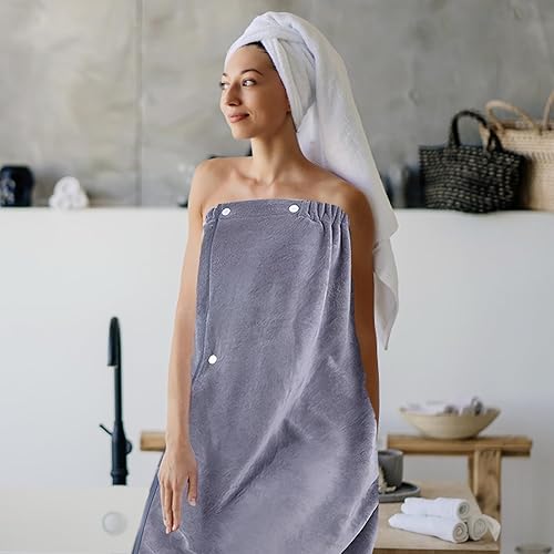 Serviette de Bain Enveloppante en Microfibre, Drap de Bain Kilt de Sauna pour Femme Ajustable Paréo de Bain Spa Piscine Super Soft Absortant Protable pour Femme Serie Robe Tube